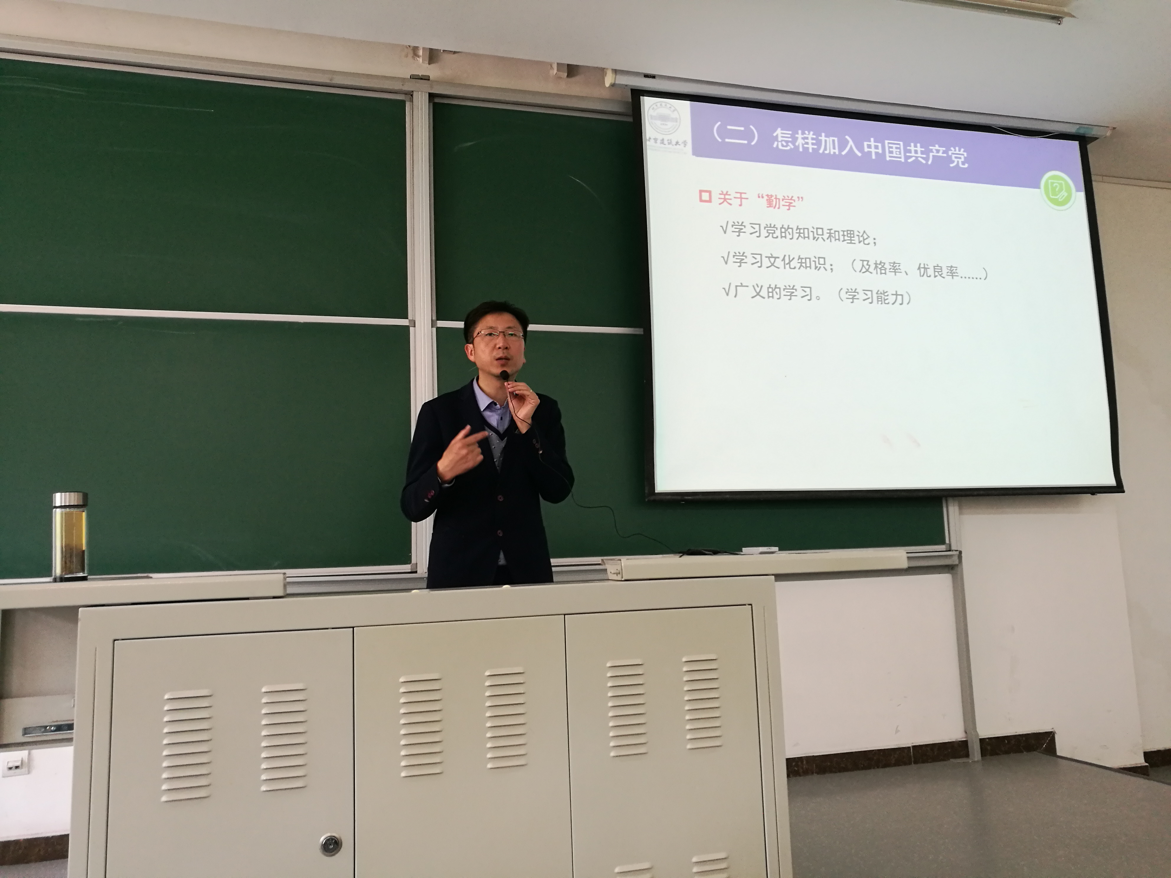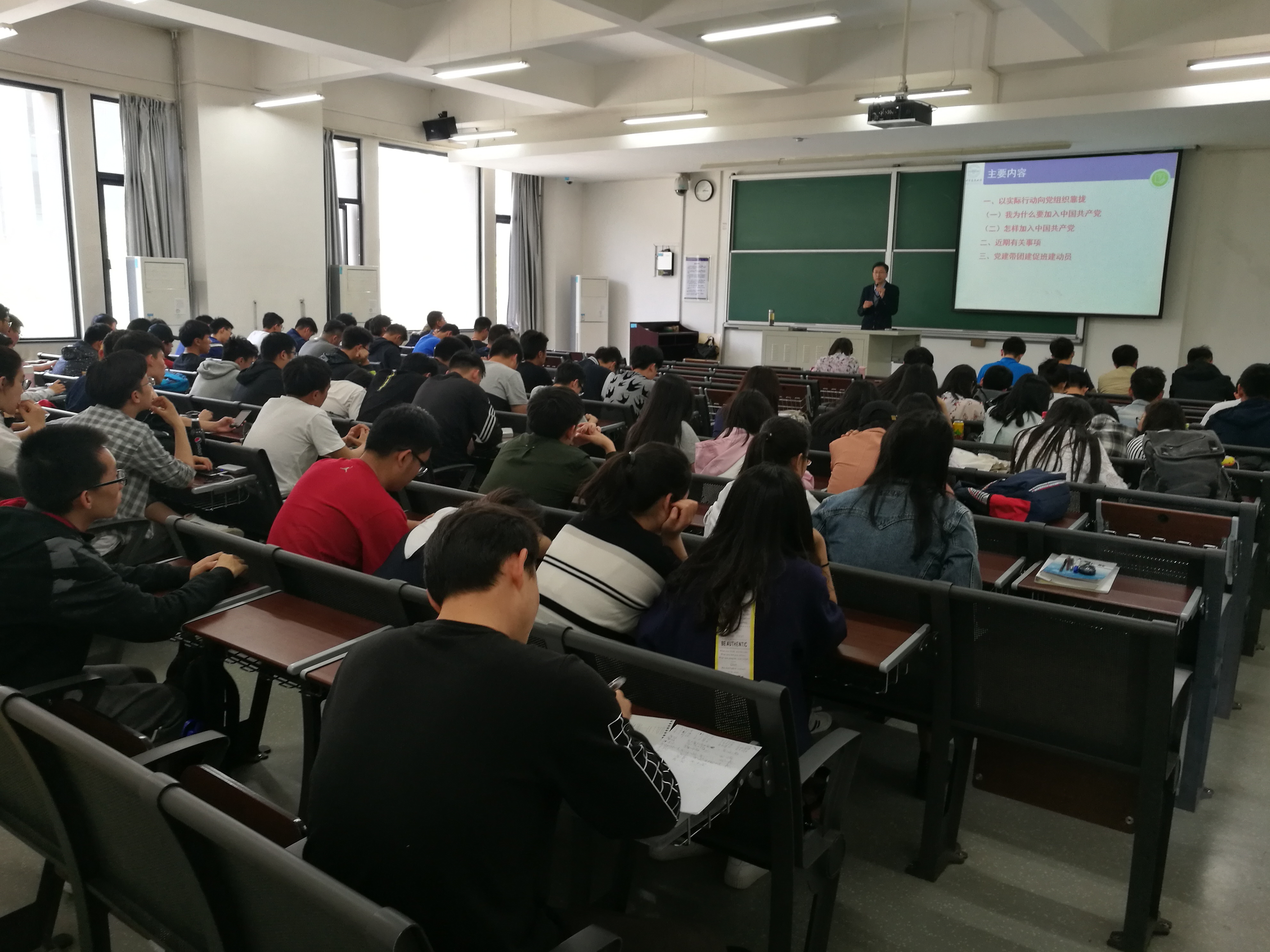 冯永龙老师首先着重从“我为什么加入中国共产党”和“怎样加入中国共产党”两个方面,为同学们详细讲解了党的基本理论知识。希望同学们积极践行习近平总书记向广大青年提出的“勤学、修德、明辨、笃实”的要求,把社会主义核心价值观落细落小落实,并准确把握入党流程。随后,冯老师就党建带团建促班建进行动员部署,要求一个研究生党支部联系一个17级本科生团支部,积极参与指导所联系团支部的支部建设、团支部委员会和班委会工作、理论学习活动、“推优入党”工作、团日活动、主题班会、实践活动等,发挥研究生党员模范带头作用,促进研本交流。最后,冯老师结合文明课堂要求、和谐校园建设等近期主要事项向同学们做了通报部署,并对大一年级的学风建设、学习成效提出了进一步要求。李晨老师就近期主要学生活动安排和注意事项做了传达和强调。研究生党支部委员与大家见面,并就有关问题开展交流。