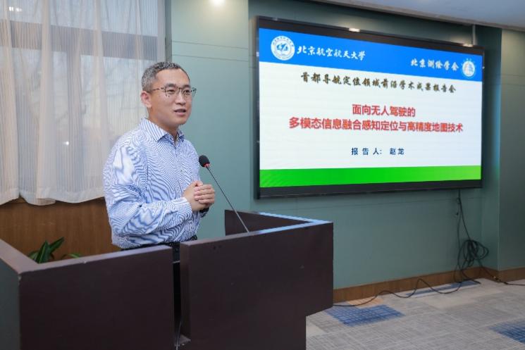 (4)北京航空航天大学赵龙教授作了《面向无人驾驶的多模态信息融合与高精度地图技术》报告,分析了无人驾驶定位与感知技术的最新进展。