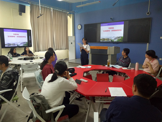 本次诗词诵读赏析会的主题是爱国主义。在场的同学积极地进行了诗词诵读和心得交流。大家一起感受了《我爱这土地》中对祖国真挚、炽热的爱国之心;《我用残损的手掌》中不屈的意志和赤子衷肠;《满江红》中报国立功的慷慨壮烈;《示儿》中拥护祖国统一的家国情怀;《忆秦娥·娄山关》中红军铁军不畏艰险、顽强豪迈的战斗精神;《蝶恋花·答李淑一》中革命人的真挚情感和为国牺牲;《卜算子·咏梅》中威武不屈和革命到底的乐观主义精神……