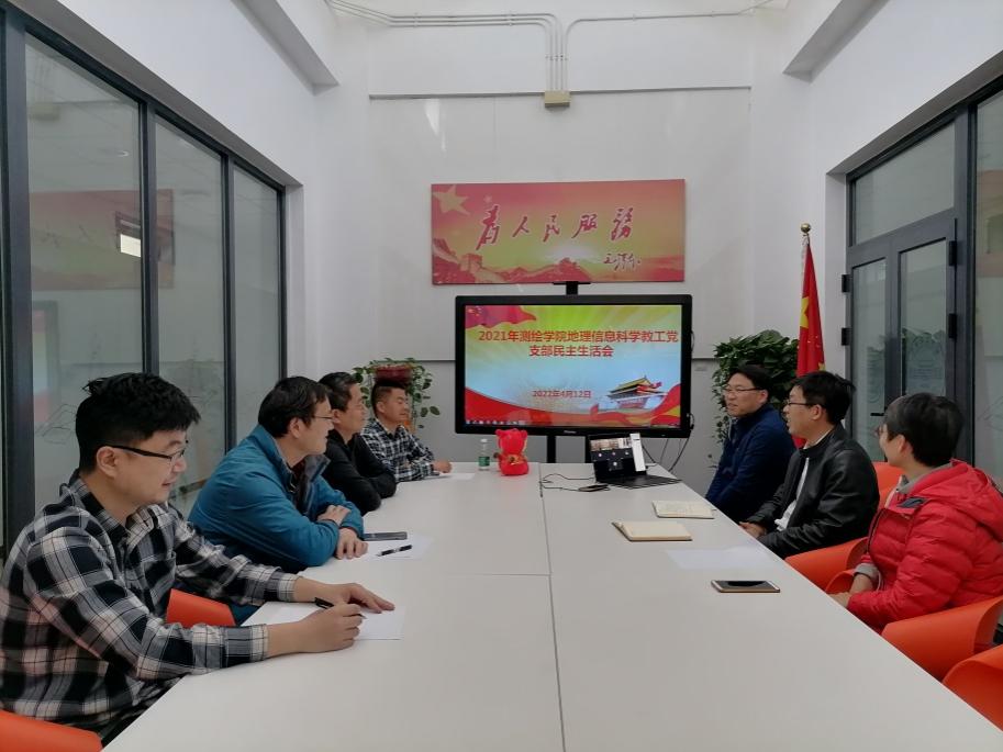 2022年4月12日下午,地信系教工党支部开展组织生活会,百合漫画 教学副院长赵江洪,党委委员、科研副院长刘祥磊以及地信系全体党员教师参加会议。因疫情防控要求,会议采用“线上+线下”的形式同步进行,会议由党支部书记黄明主持。