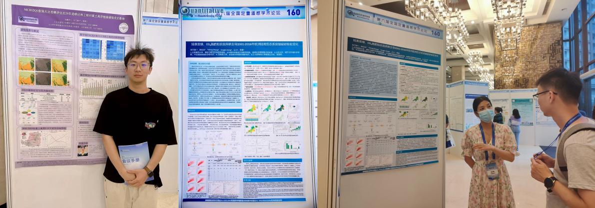 6月16日至18日,北建大4位师生代表全程认真参会学习并3次进行口头汇报和2次进行Poster展示。6月16日下午,吴巧丽老师在分论坛1:遥感机理模型作了名为“几何光学-辐射传输理论在碳水通量模拟中的初探”的口头报告,晚上又以“陆表变绿、二氧化碳施肥和农田弃耕主导2001-2016年欧洲陆地生态系统植被碳吸收变化”为主题的论文进行了墙报展示。6月17日下午,罗娜娜副教授在分论坛13:大气遥感应用作了名为“可解释深度学习中国近地面臭氧遥感反演”的口头报告,吴巧丽老师在分论坛14陆地碳循环遥感作了名为“顾及叶片最大碳羧化速率时空动态提高欧洲GPP模拟精度”的口头汇报;6月17日晚上,蒋捷教授团队研究生二年级的张鑫阳同学以“MCD12Q1数据无法准确评估近20年退耕还林工程对黄土高原植被碳吸收的影响”进行了墙报展示和交流。