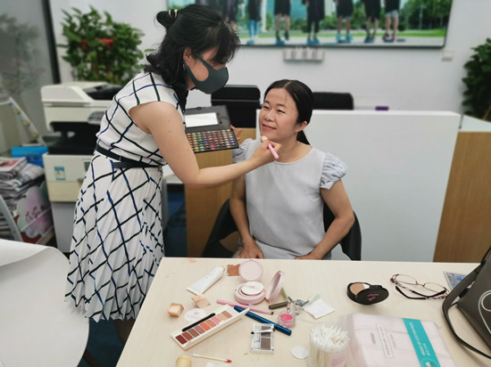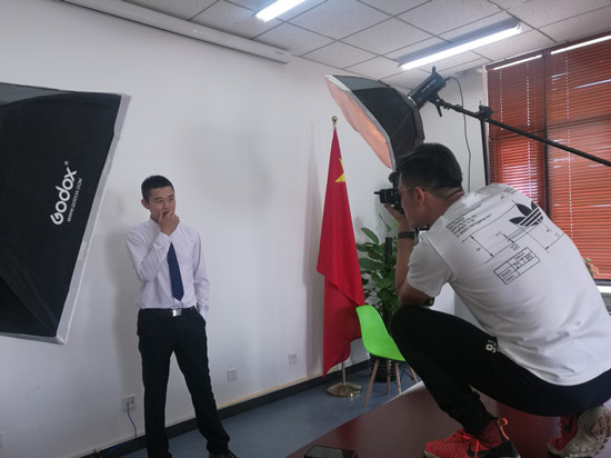 本次活动的摄影师和化妆师早早到现场布置、准备器材工具,现场的摄影棚和化妆间虽然简易,但摄影师和化妆师却精雕细琢,力求为每位教职工拍出“最美工作照”。