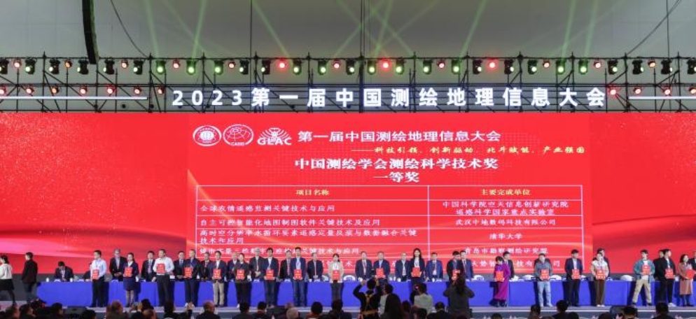 同时,大会现场公布并表彰了第二十二届夏坚白测绘事业创业与科技创新奖、2023年测绘科学技术奖、地理信息科学技术奖、卫星导航定位科学技术奖等荣誉奖项。我院王坚教授牵头完成的“大型建筑形变多源协同监测关键技术及产品模组研发”荣获中国测绘学会测绘科学技术一等奖;韩厚增牵头完成的“北斗/GNSS星地增强一体化高精度定位与服务技术及产业化应用”荣获卫星导航定位创新应用白金奖;吕京国主要参与的“面向复杂场景的地理要素智能提取与变化检测技术及应用”和郭贤主要参与的“顾及时空谱角多源遥感特征的深度学习方法与应用”分别荣获地理信息科技进步一等奖。