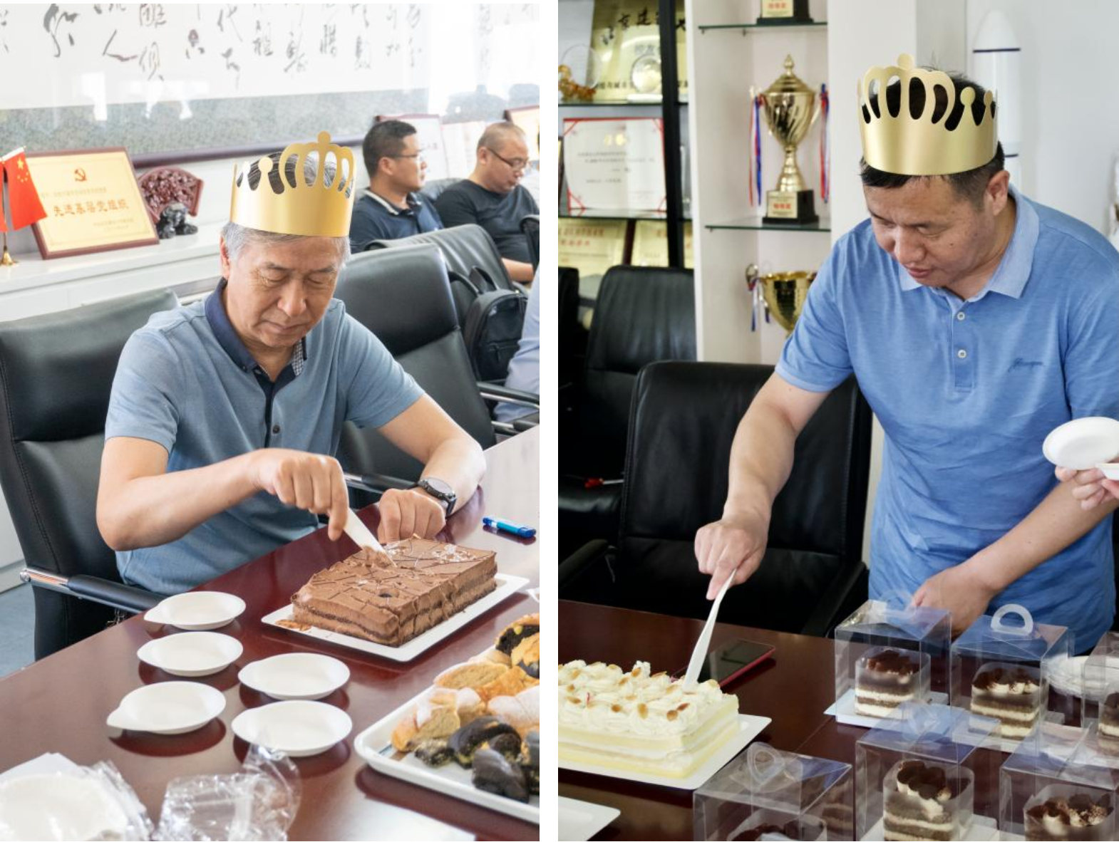 随着欢快的音乐响起,大家齐聚在生日蛋糕前,齐唱生日歌、许下自己心中的生日愿望、共同吹灭蜡烛,一声声热情、诚挚的祝福将活动推向了高潮,大家彼此关怀,徜徉在一片欢声笑语中,最后由杜明义院长及7月1日生日的吕书强老师为大家切开蛋糕,满满的仪式感,充满了家的温馨与祥和。