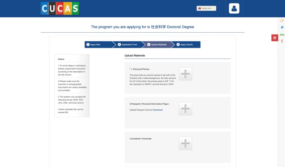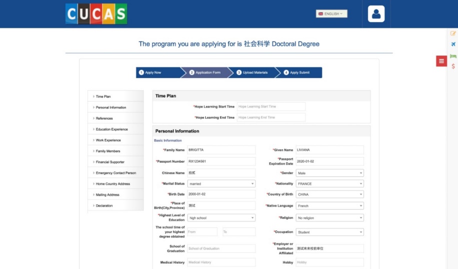 Click‘Apply Now’to enter the application process interface, and the navigation bar above can be clicked: