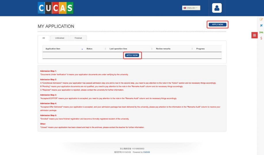 Click ‘Apply Now’ to enter the application list; The following is the application process tips: